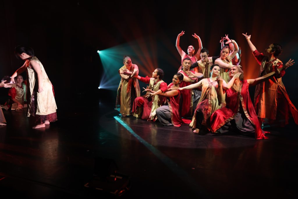 “Bhumi by Maya Dance Theatre and DADC was a multilayered performance, grounded as befitting its name, but also frequently ephemeral like air (the sheer emotive elegance of Gigi from Indonesia), filled with fiery energy (the lightning dynamism of Shahrin, Sufri, Shruti and Australian Stellararts dancer Liz) and demonstrating flow and trajectory like a river (the words of Jo Devadason spoken by Verena Tay, and the music of Kailin).